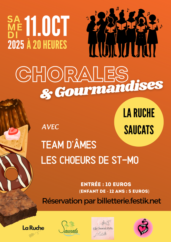 TEAM D'ÂMES et LES CHOEURS DE ST-MO en concert Samedi 11 octobre à 20 heures à la salle LA RUCHE à Saucats