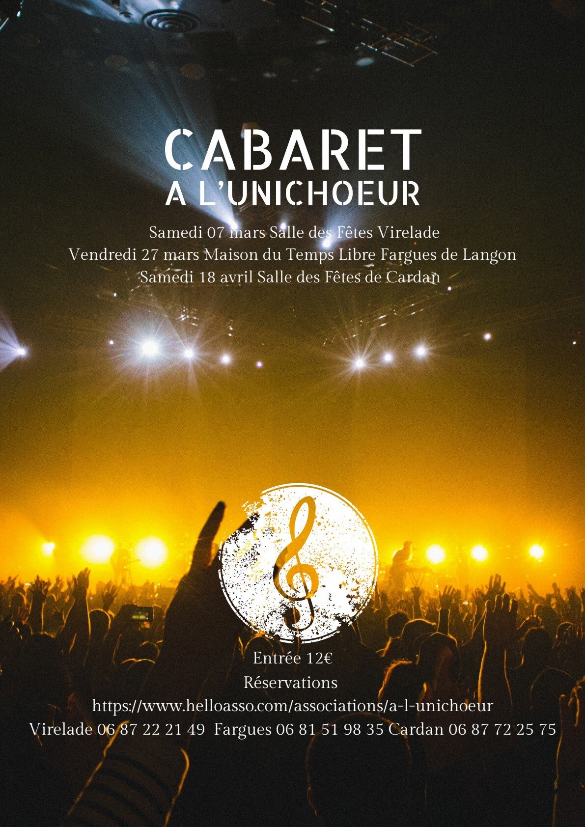 Les cabarettistes de la Chorale A LUnichoeur vous propose 3 dates pour venir les applaudir et les encourager !!